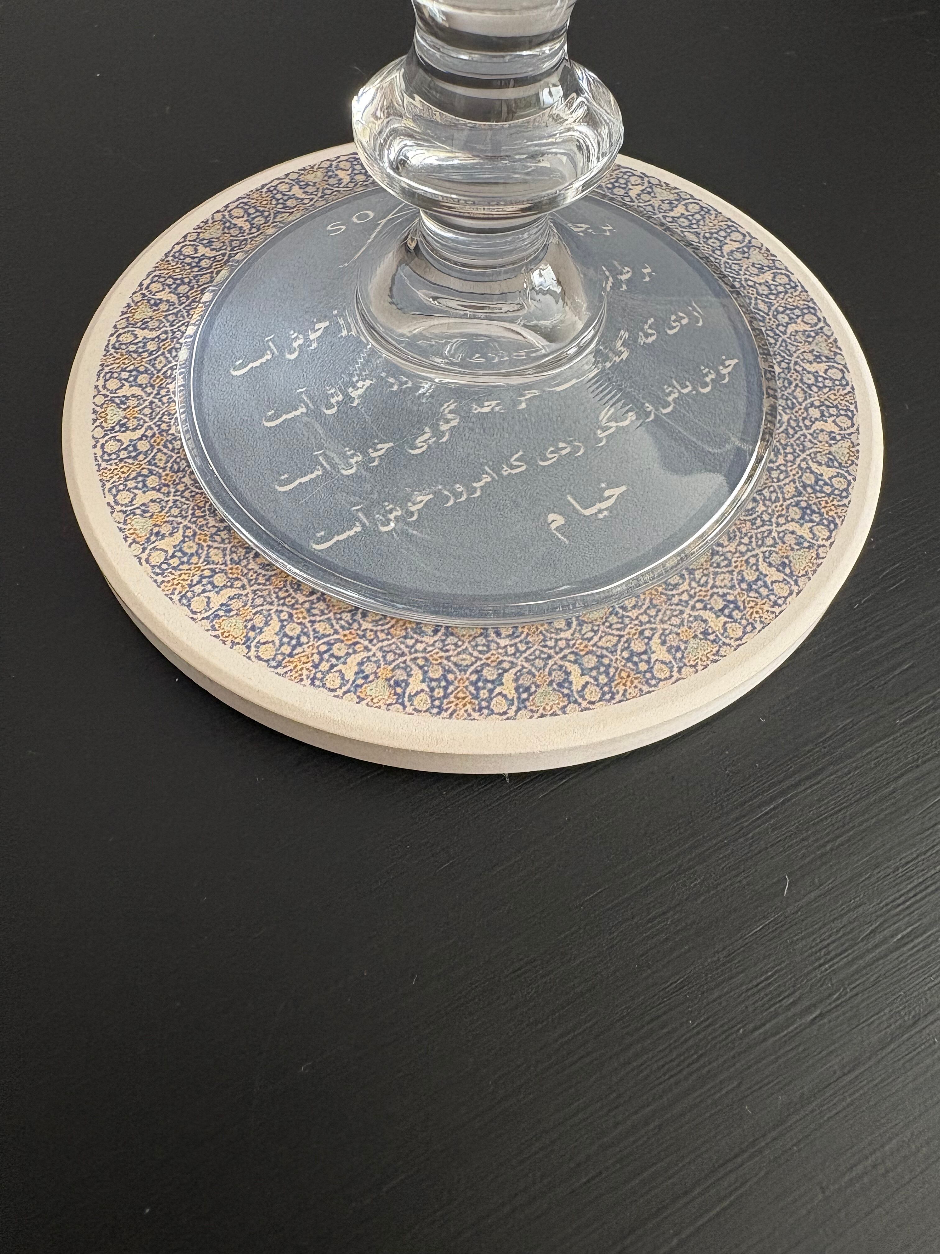 ペルシャの伝統的な装飾模様と、古典詩人による美しい言葉をあしらったコースターです。